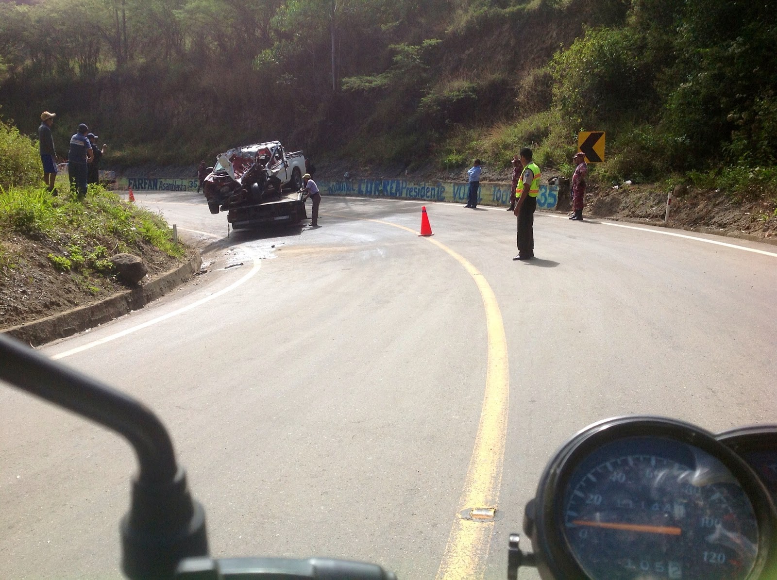 Cuenca, ecuador. 253km said by to my Riobamba host family. While leaving town went to pass a collectivo minibus and he decided to turn...no signal.. I hit the both brakes hard fully loaded, and started skidding for 20 or 30 yards and I was behind him and actually touched his back bumper with my front fender as I was sliding it was that close...but I never stopped, just kept going...shew, another close call. Went 253km to Cuenca and Went to Papa Johns for free wifi. Found Hostal Alternative on trip advisor.com. Best Hostal yet. Even changed my oil for free. See my review here. http://www.tripadvisor.com/Hotel_Review-g294309-d3194198-Reviews-Hostal_Alternative-Cuenca_Azuay_Province.html. Made a great meal after a trip to the mercado. Talked to an Australian doctor and a motorcyclist 10 months on the road from DC. Great stay.